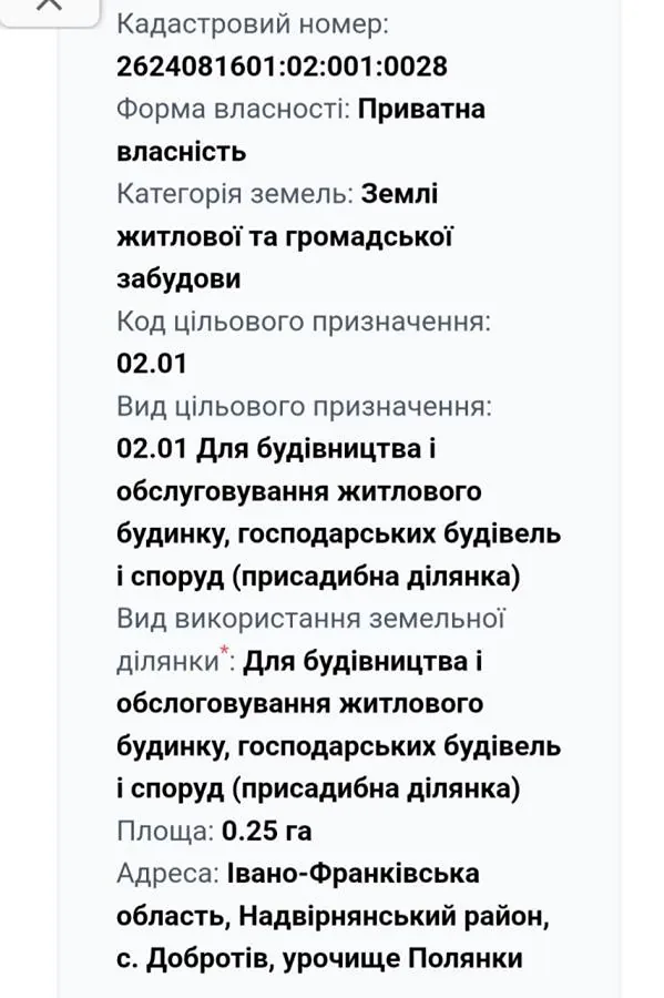 Цільове призначення: Для будівництва і обслуговування житлового будинку.